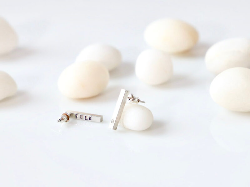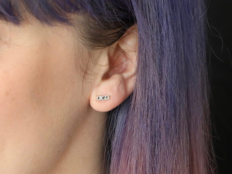 $100.00Handmade Sterling silver Four Letter Words stud earrings. Select your own.